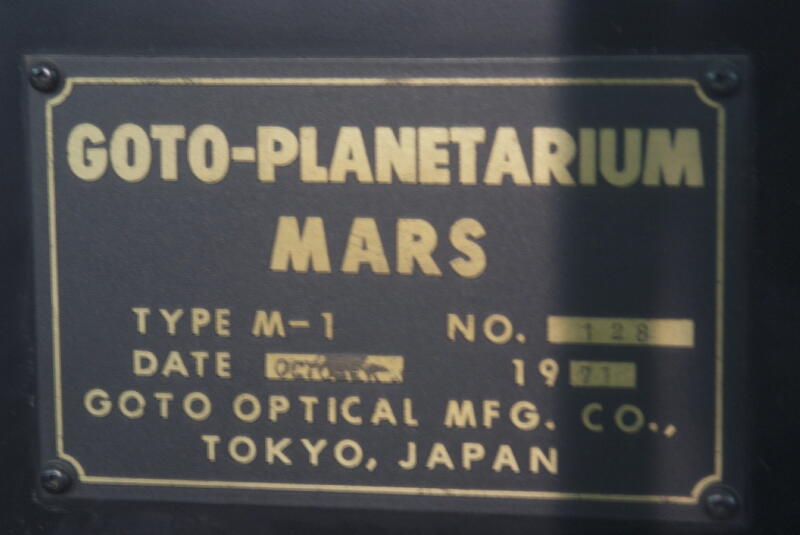 五藤光学製 プラネタリウム投影機 MARS TYPE M-1 DATE 1971/10 国産では日本最古 |