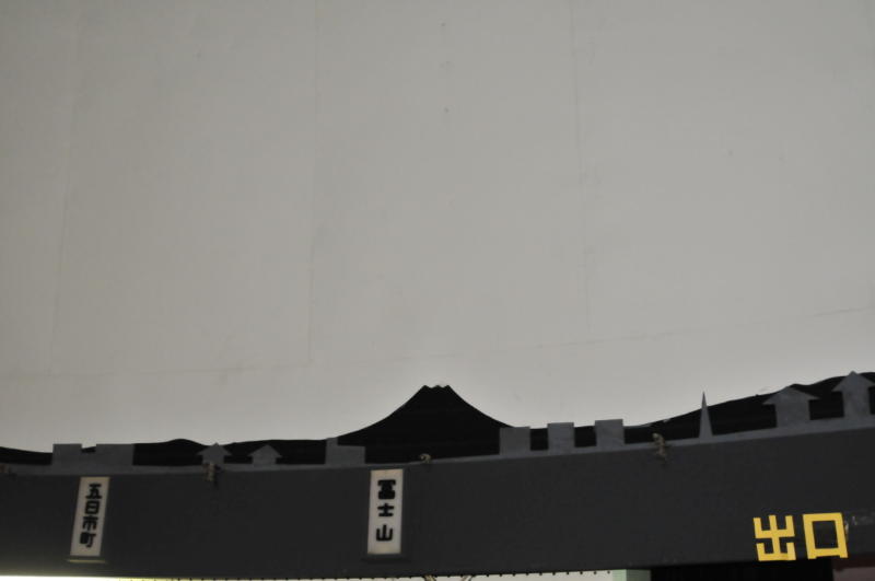 | ランドマーク プラネタリウム投影ドームには、プラネタリウムの 場所から周囲にどんなものが見えるかが表示してあります。 星空の投影が始まる前に、何があるか探して見るのも 隠れた楽しみの一つです。 青梅市民なら一度は行ったことのあるはずの 鉄道公園の機関車がシルエットで。(写真右) 東南方向には東京タワーが。(写真下) 南西方向には富士山のシルエ ットが。(写真右下) |