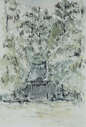 冬の二上山々頂の伝大津皇子の墓。A.ベックリーンの「死の島」を想い起こさせます。
