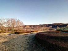 3キロも歩くと、八高線の鉄橋の先で、河川敷の公園に出る。右手には加治丘陵が広がる。一面の枯れ景色であるから、枯野の好きな人には、よい散歩コースである。