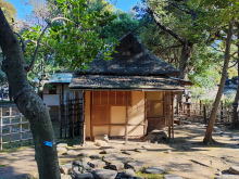 海岸を離れて野島公園を目指す。5,60メートルの丘の上に、展望台があり、海の眺めを楽しむ。小さい丘にしては、階段は3百段ほどあり、結構きつい。くだりはくねった道を行くと、下に伊藤博文の藁葺きの別邸がある。