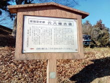 穴八幡古墳から、東の駅方向へもどる途中には、八幡神社や寺(大梅寺)があり、さらに先には城跡(中[なか]城跡)がある。神社には欅であろうか、巨大な神木がある。寺では亭で休める。