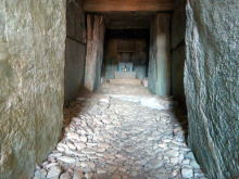 古墳は、だれの墓とも知られていないようである。玄室内部には玉石が敷きつめられている。こうして見ると、古墳というのは死者の胎内回帰のイメージと結びついているようである。