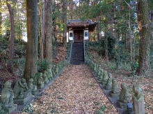 城跡は池のあるちょっとした公園から、杉の茂った丘の上に登ると、森閑とした頂がそれらしい。石碑(仙覚律師碑)や、羅漢であろう石仏の並んだ小さな堂がある。