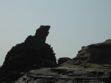 筆島海岸にわき水があるというので、行ってみました。 滝というほど大きなものではありませんが、岩肌をきれいな水がしたたり落ちています。 岩の中ほどをくりぬいたような小さなトンネルがあり、それをくぐって先へ進むと、おもしろい地層も見られました。そして、また滝。こちらは水量もあり、シカマガの滝のように、雨のときだけ、ではなく、いつも水が流れているようです。 それにしても、おもしろい地層です。 7月20日 サクユリ ![]() ![]() 月と砂漠ラインにサクユリを見に行きました。10日ほど前はまだまだ堅いつぼみでしたけど、きょうはどうでしょうか。 咲いてましたよ。友人から、サクユリとヤマユリのちがいを教わって…じつは私、島に咲く白いユリは、ほとんどがサクユリだと思っていたんです… だから、サクユリとヤマユリを識別しながらの観察は、興味深いものでした。 先日いただいたユリは赤い斑点がありましたから、ヤマユリになるのでしょうけど、伊豆あたりでは、混植で、斑点のあるサクユリもあるらしい、とのこと。 このサクユリの写真を見ると、花弁の大きさがサクユリとはちがうようにも見えます。 花の識別はむずかしいです。 7月21日 元町港 「あれ、鳥かな」「鳥じゃないよ。水をかぶっても動かないから」 「ふうん」 元町港にプッカリプッカリ。波に揺られて沖へ流れていきます。 主人は『木片』だというのですが、それにしては、あまりにうまくできたデコイのようです。 なんだか目が離せなくなって、じっと見ていたら、 「ありゃ〜」 動きましたよ。羽を広げて、水中に突っ込みました。 「え?木の破片だって?」 主人の顔をのぞき込むと、 「あの鳥、なにしてんだろ?」 あれほど、『木片』だと私を笑っていたのに、すっかり忘れたように鳥のようすをいぶかしんでいます。 鳥だったでしょ。 7月22日 王の浜 野増に王の浜というのがあります。なにやら、王の浜には竜宮城があるらしいのです。で、探検です。 でも、竜宮城といわれるようなきらびやかな風景は見つけられませんでした。 私は、竜宮城は三宅島の近くにあると思っています。だから、大島にはないんじゃないかと思っているんですが、あればあったで、見てみたいものです。 どこにあるんだろ。きょうはメジナっ子?がうまく撮れたかなぁ。