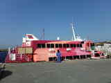 なんておしゃれなキロポストなんでしょう! 新島特産の新島ガラスで、できているんでしょうね。 しかも手作り?? 形がちがうんです。 それだけのことなんですが、なんだか得した気分になっちゃいます。 いいもの、見〜つけた(^^)/ 6月18日 予報どおり、雨。宿の奥さんに、保育園まで送ってもらいました。 ここで、大失敗。きちんと連絡を取っていなかったので、保育園にご迷惑をおかけすることに。 まず、事前の連絡。これは電話を入れたのですが、時間をしっかり伝えていなかったので、ここからいけなかったんですね。 台風7号の影響で、ジェットフォイルの運航が危ういらしいので、村営船にしきを一便早めて式根島に行ければ、と思ったことも、私の勝手な行為でした。 反省してます。 でも、子どもたちの『また来てね』の言葉に救われました。 受け入れていただいて、感謝しています。 そのうえ、港まで送っていただいて、ほんとうにお手数をおかけしました。 おかげで、早めに式根島に着くことができ、ほっとしました。 でも、村営船の運行は心配することはなかったようです。ちゃんと動いていました。ついつい、母島のときのことを思い出して、早めに動こうとしたのですが、そこまでひどい交通事情ではなかったみたい。 旅行者、でしたね〜。 新島をゆっくりまわれなかった未練はありますが、式根島をまわる余裕はできました。雨ですが、30年前に感激した神引展望台に向かいました。 ![]() さすがにけぶったような風景です。 初めてここへ立ったとき、三宅島の黒い溶岩のなかで生活していたせいか、この白い砂の景色が目に痛く、また海底のようすがわかるのが、記憶に強烈に焼き付いていました。 きょうの景色は、強烈さはありませんが、再び同じ場所に立てたという満足感でいっぱいになりました。 ![]() そこから、地鉈温泉の湯加減の穴・憩いの家(お休みでした)足付温泉・松の下雅の湯をまわり、さらに泊神社へ。 ところが泊神社は除草剤をまいてあるので立ち入り禁止になっていました。残念でした。 6月19日 きょうは晴れ。どうしても、神引展望台からの景色が見たくて、レンタカーを借りて行ってみました。けぶってはいましたが、海の底はきれいでした。 10時半から、開発センターのひと部室を借りていただいて、かおりん劇場をさせていただきました。 保育園とおとしより約30名。用意されていた椅子は満席(12席くらいだったかな)。きのう雨だったので、きょうの晴れは、畑仕事に行かなっくっちゃ、でしょうに、集まってくださいました。 ここでも、勉強させていただきました。まだまだ足りないことがたくさんで、ほんと、自分が情けなくなります。 でも、なんとか終わり、よかったです。 思いがけず、島の方からランチのお誘いがあり、喜んでごいっしょさせていただきました。 さらに帰りの桟橋まで、見送りに来てくださり、申しわけないことでした。 おみやげにいただいたカボチャ、よもぎ餅、とってもおいしかったです。 ありがとうございました。 6月23日 橘丸一般公開 いよいよ新造船に乗ることができます。どんな感じでしょうか。楽しみです。![]() セレモニーのあと、いよいよ乗船。明るい船内です。あちこちに、名誉船長さんの柳原画伯の作品が飾られています。 マスコットも、『キャプテンたちばな』とのこと。彼の顔を見て、トリスウイスキーを思い出される方もいらっしゃるでしょうね。 案内所には、どこかで見かけたネコちゃんが! ![]() ![]() あんこネコちゃんが、橘丸を背負って座っていました。あんこさんの着物姿もかわいいけど、制服姿もなかなかです。 船室は、2等が大きく変わっていました。席と席との間に仕切りができて、ロッカーもカギ付きです。 貸切部屋があったり、バストイレ付きの部屋があったり、キッズルームに授乳室、赤ちゃん幼児連れには、快適な船旅になりそうです。 ![]() 橘丸のあとは遅ればせながら、あじさいロードへ。 「もう終わりだよ」 とは聞きましたが、気になるので行きました。 暑い日射しの中では、ちょっと首をかしげた感じのあじさいでしたが、なんとかきれいでした。 さらに、椿花ガーデンを回ってきました。 たくさんの種類があり、とても全部は載せられませんが、伊豆七島の名前が入っているものを並べました。 初めて見た、大島グリーンガク(仮)に魅入られてしまいました。 なんともいえない色合いです。