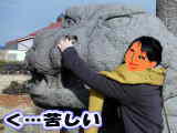 七福神さまの中に、連絡して開けていただかないと、お会いできない神さまがいらっしゃいます。 もしかしたら、お正月なので、開いているかなと思ったのですが、残念ながらダメでした。 連絡をすればいいのでしょうけど、なんだか、私一人のために、わざわざお手数をおかけするのも、 申し訳ない気がして、なにか、ついでの機会があれば、と思っています。 1月8日 「かあさん、遊びに行ってもいい」 末娘のいきなりの来島です。仕事を終えたあと、竹芝発22時のかめりあ丸で、翌朝6時岡田港に到着しました。 「母島とは違うね」 「でしょう。大きいよ」 朝ご飯を食べて、ひと休みして出かけることにしました。まずは、『ゴジラの像』と記念撮影。 ゴジラって伊豆大島がふるさとなんですって。 で、なかよく、と思ったら、こんな写真になりました(^^;) 「次は、どこに行きたい?」 大島は大きいので、なにをしたいか、なにを見たいか、と決めておかないと一泊二日ではまわりきれません。 「あのね、リスがいるところ」 「わかった。じゃあリス村から」 ほんとうは、6時に船を降りたあと、三原山へ登ろうと思っていたのですが、娘から 「今回は山はパス」 と断られたので、次回にまわします。 リス村には、リスだけでなく、プレーリードッグやウサギもいるんですよ。椿もたくさんあるし、のんびり散策できるところでした。でも、プレーリードッグは寒くて引きこもっていました。 リスたちは、井桁に組んだ木のおうちの日当たりのいいところで、ひなたぼっこ。エサをあげることができるので、娘はヒマワリの種を手袋をした左手に乗っけています。