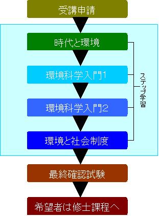 プレ大学院は、環境分野の基礎知識習得を目的として、カリキュラム編成がなされた講座です。学習内容は、環境問題の歴史や科学・法律・社会制度といった、広範な分野を含むテキストを用い、通信制による「ステップ学習」で講座を展開します。テキスト付属の課題に対して論文形式のレポートを提出する仕組みです。