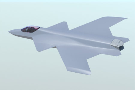F-26の外形を、機内レイアウトを検討しながらモデリングしています。イラストはモデリング中のF-26で、検討用に4発の中距離AAMを機内に配置しています。F-26はF-35と同じ単発のステルス機ですが、F-26の方がF-35よりも胴体高さが低いので、搭載できる武装の種類は少なくなりそうです。 三枚目のイラストはF-35と並べたF-26です。搭載するエンジンサイズの違いから、二機の胴体高さが異なるのが分かると思います。