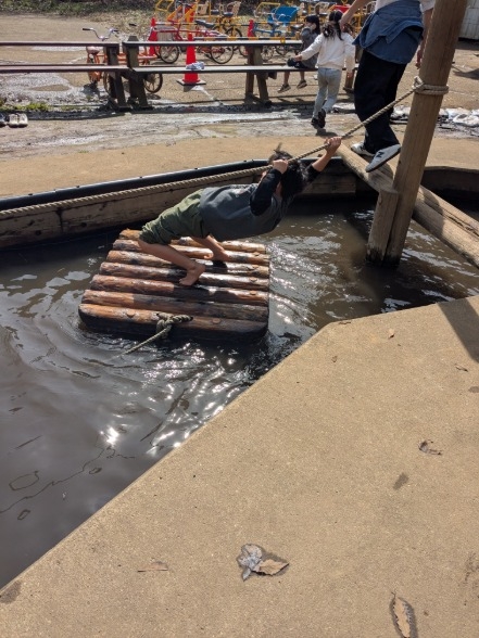 翌日は、眠い目をこすりながら、アスレックでダイナミックに遊ぶ!ほぼみんなずぶ濡れ...。