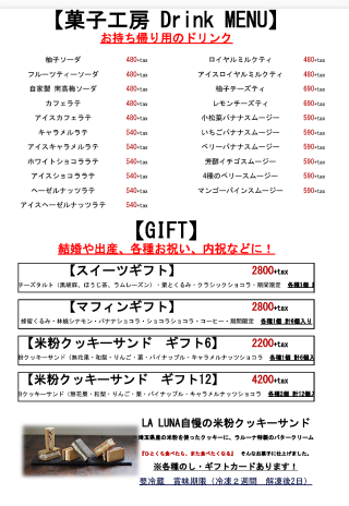 菓子工房メニュー