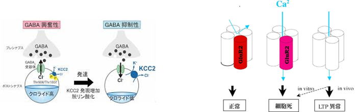 ・小脳内カルシウム濃度は、GABA受容体にあるKCC2の発現や機能を通じてGABA作用の転換時期に影響を