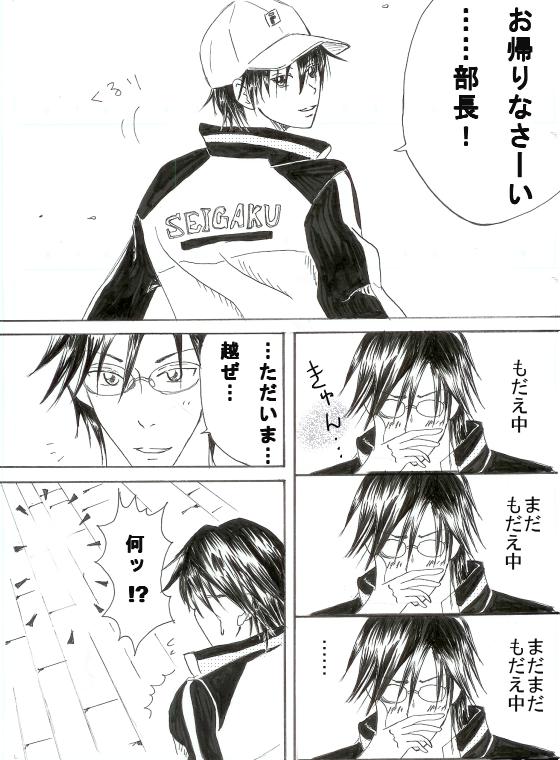 >「おかえりなさーい…部長!」 記念!(意味不明) フアセさんの萌の種?を元に ”あの後”を描いてみました。 私、リョ塚が好きなんです… 国光は天然だと思います… 「あれ?周助は?」なんて意見は無しの方向でお願いします。(爆) 20050615
