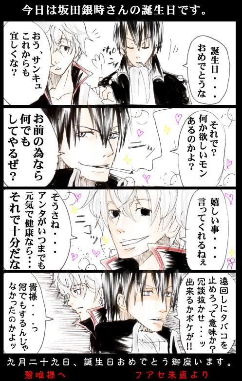 > フアセさんから頂きました!!! どうしよう…土方さんが…攻め です!!!(萌) かっこよいです!!!ブハッツ!!!(鼻血) そして…坂田さんが…エロ です!!!(萌) 誘ってますよこれ!!!ドゥハッツ!!!(鼻血) 喧嘩オチというのもすごく好きです!!! ありがとうございましたぁぁぁ!!!(萌) 20050930